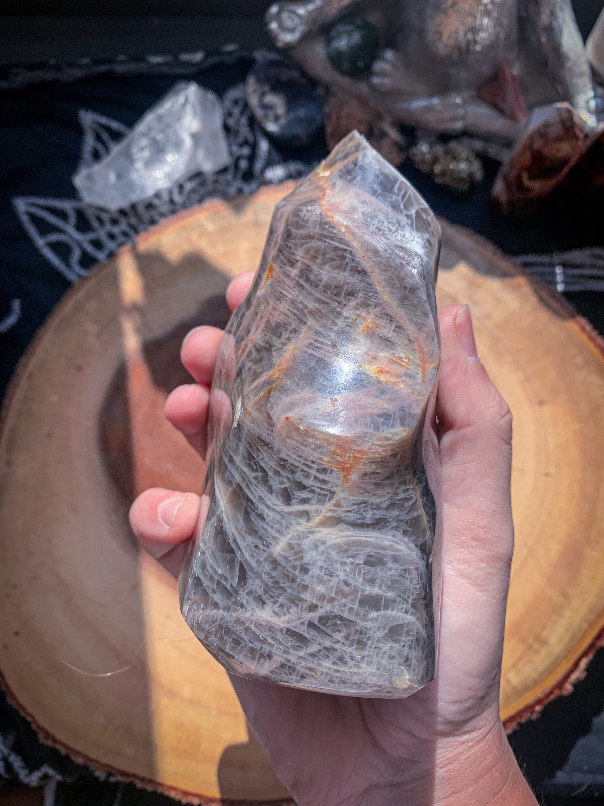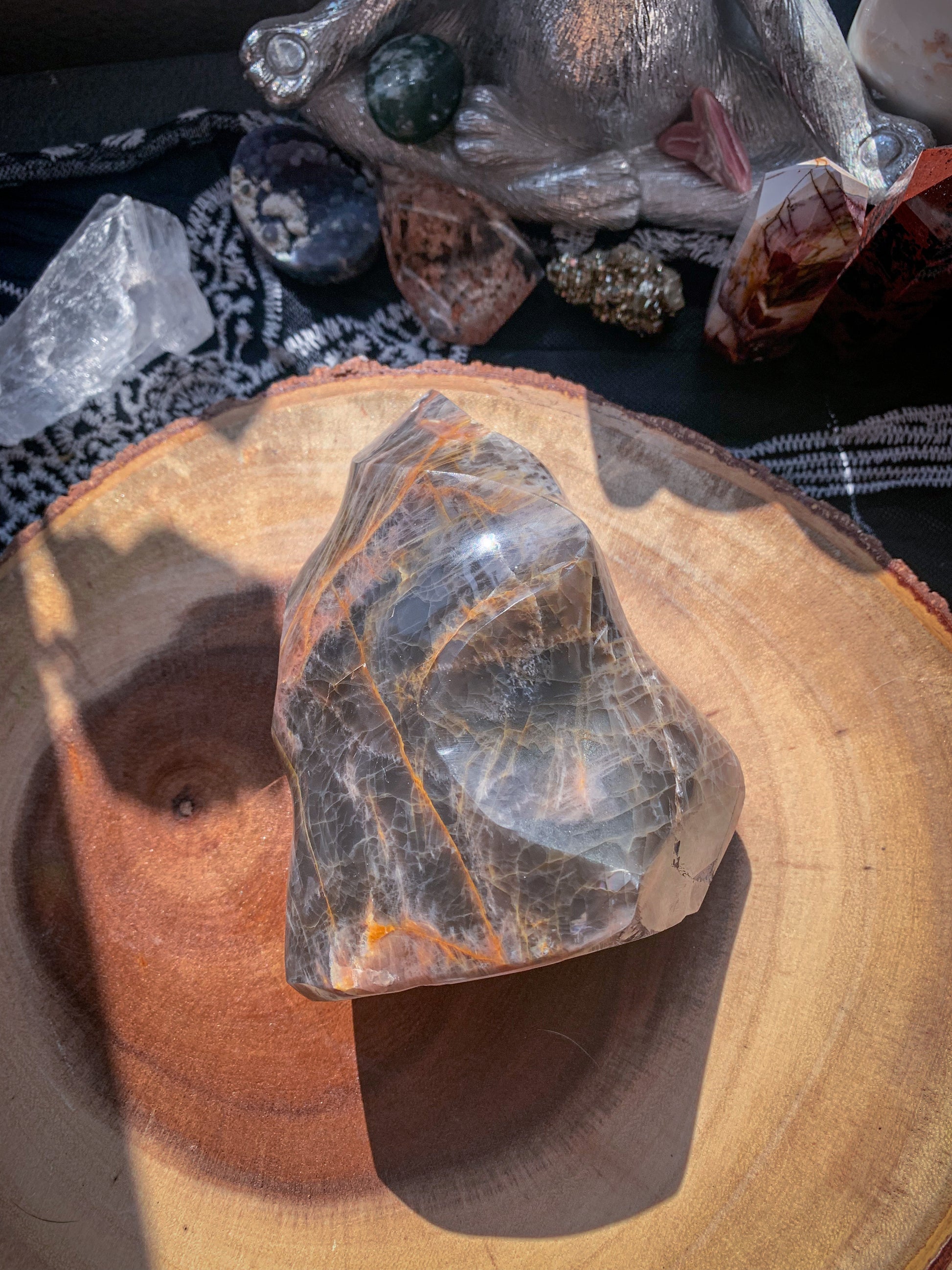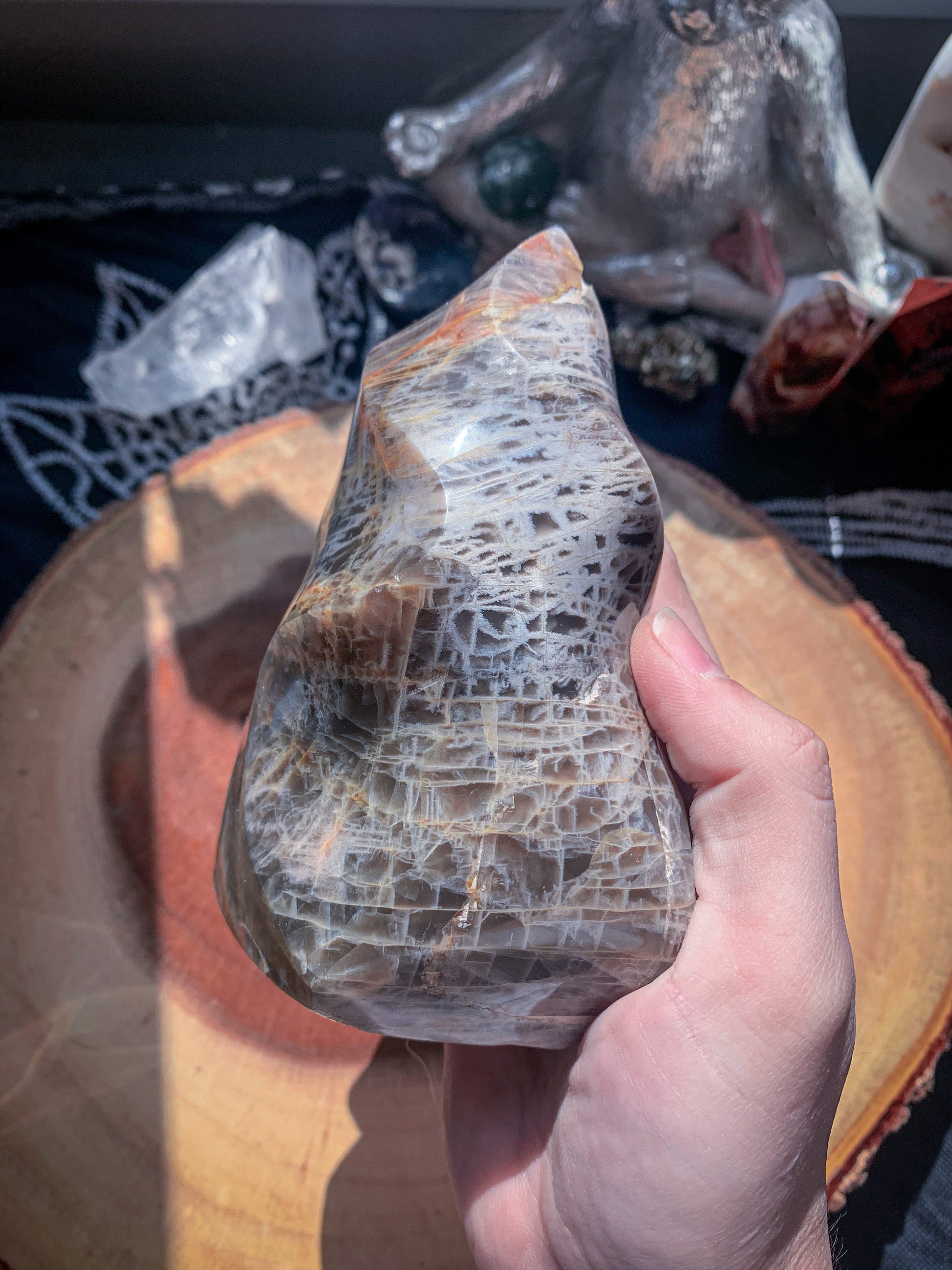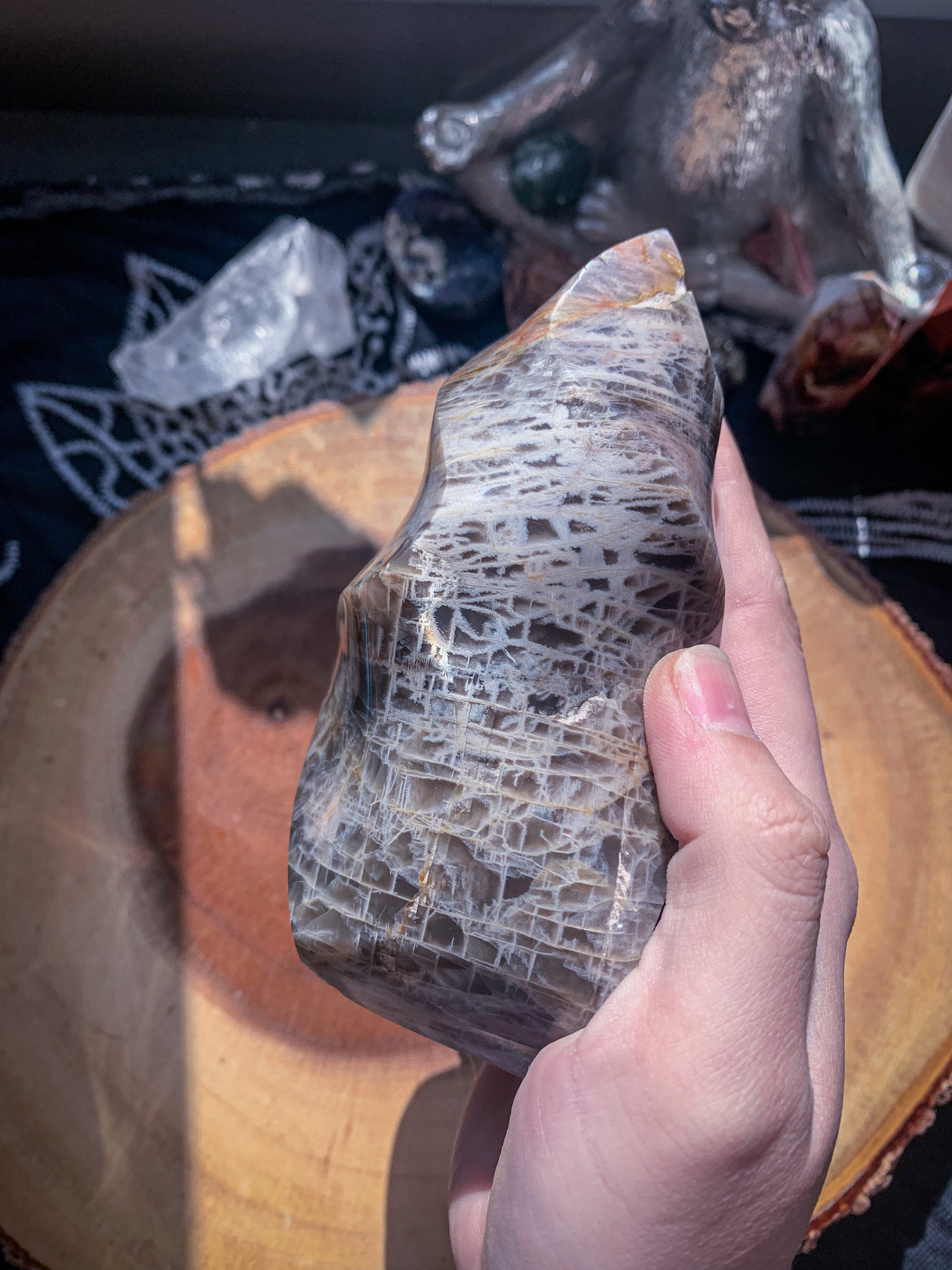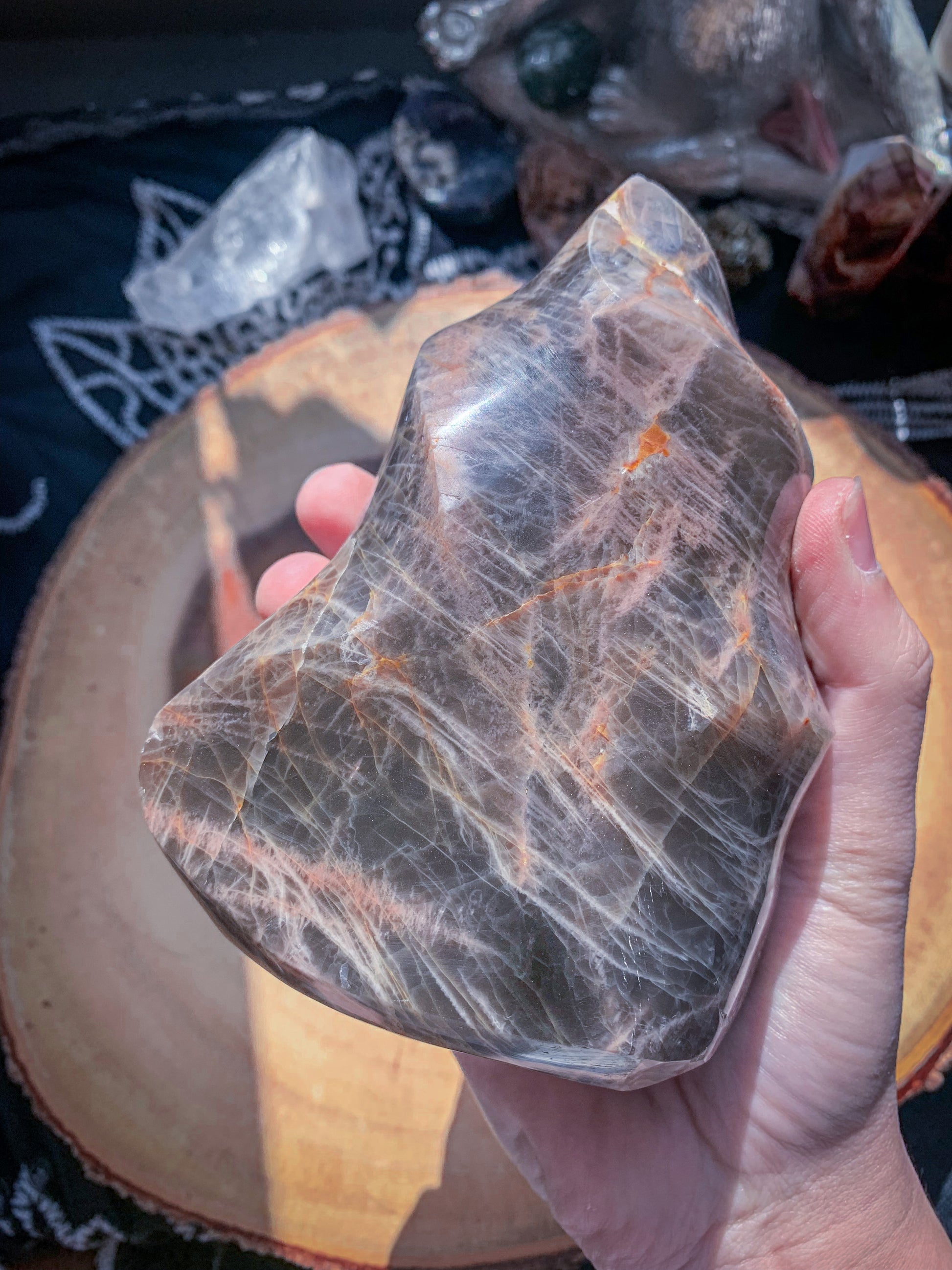 The calming energies of all types of Moonstone will help one maintain a clear head that's able to make rational decisions in times of difficulty. If you are going through a breakup or are having difficulties with someone close to you, we recommend carrying Black Moonstone at all times. When individuals deal with stress from another person that they’ve shared experiences or life with, they subconsciously lower their guard because of the love they have for them. When we see a loved one uncomfortable, it is in our nature as humans to help. This can backfire and leave one susceptible to their toxic energy.