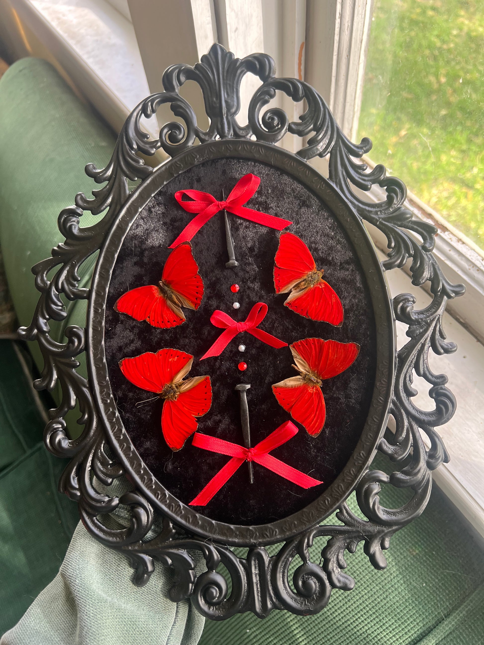 Crimson Queen Bubble Glass Antique Vintage Butterfly Framed Oddities Artwork