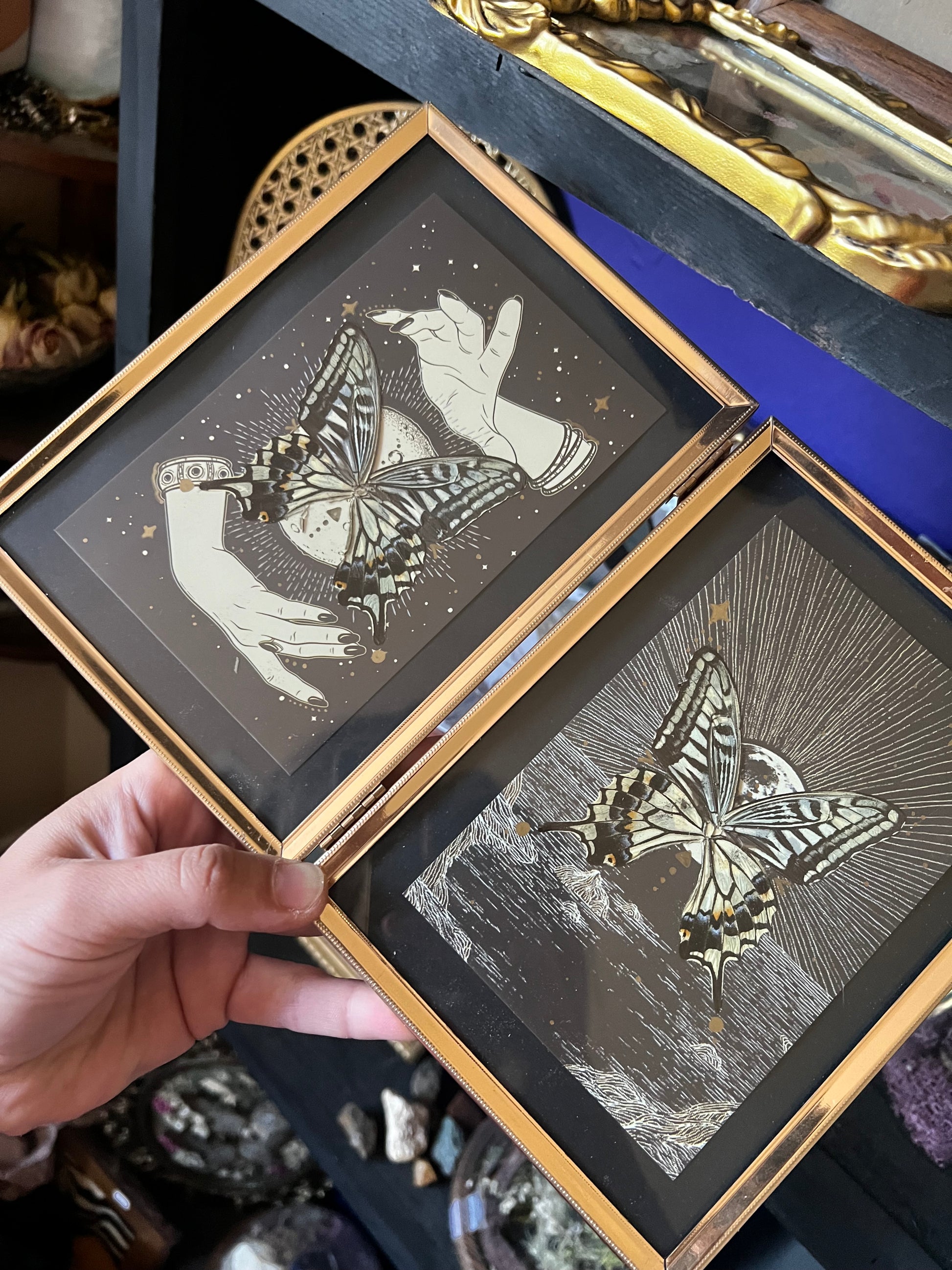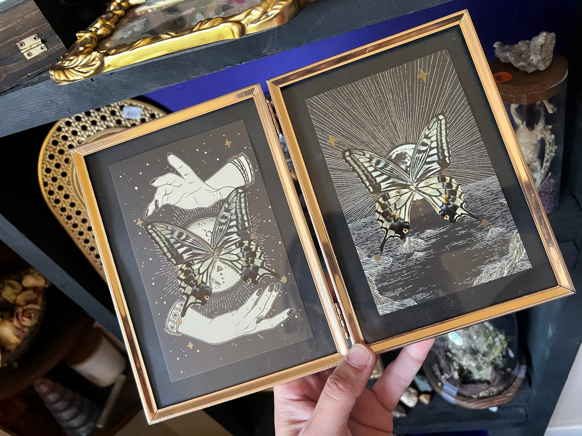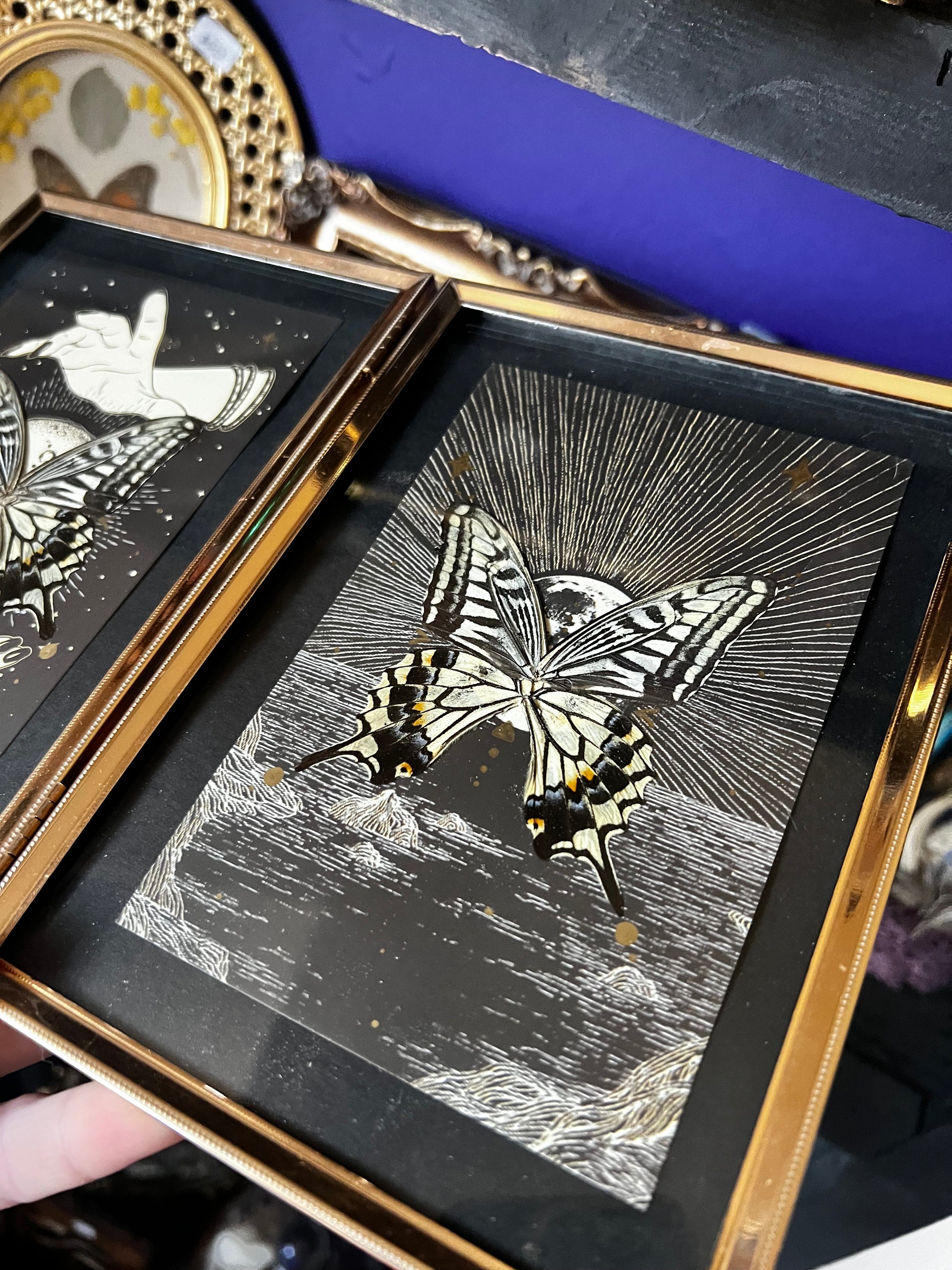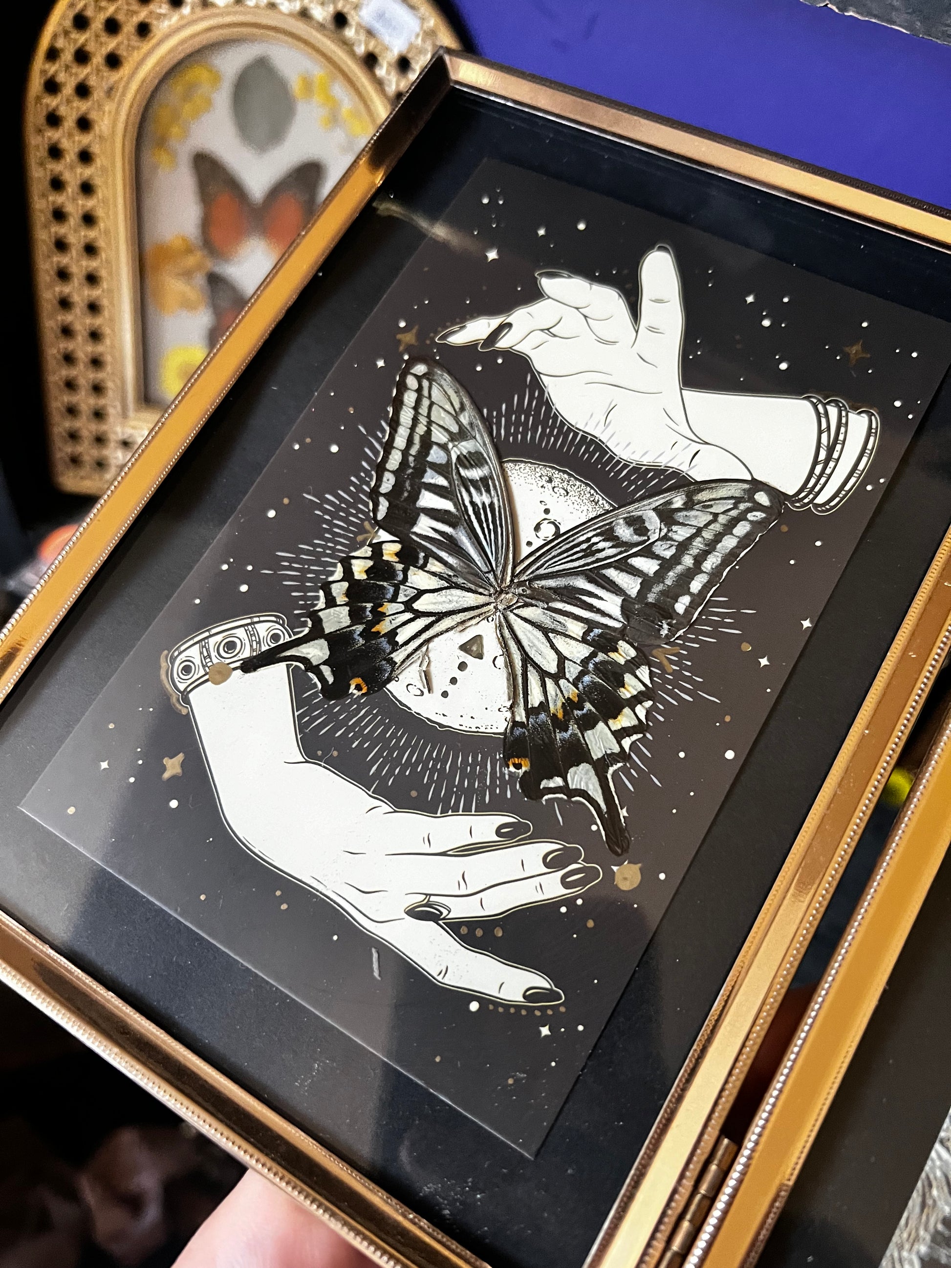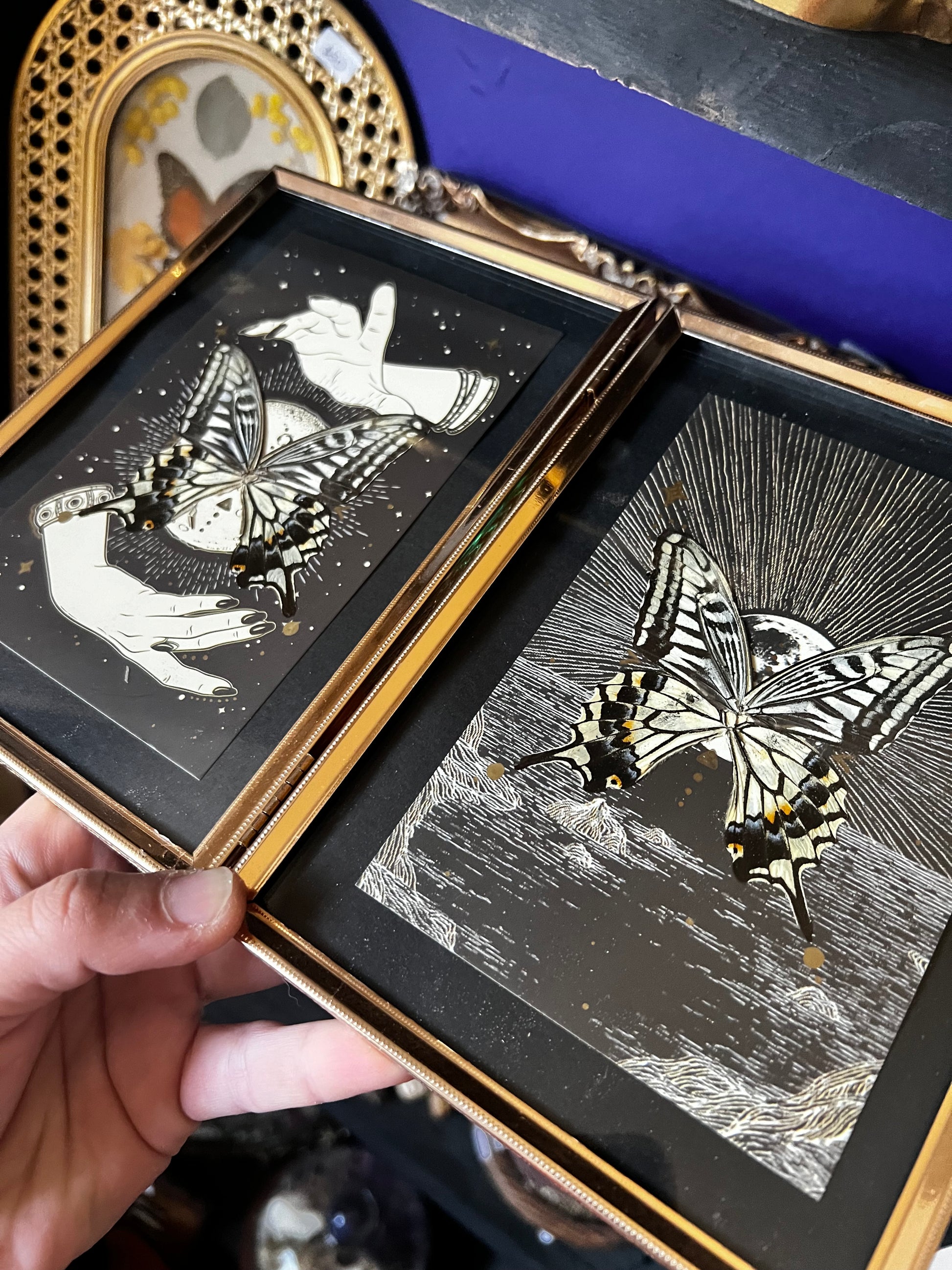 Double Framed Spiritual Art Swallowtail Butterfly Wing Entomology Art