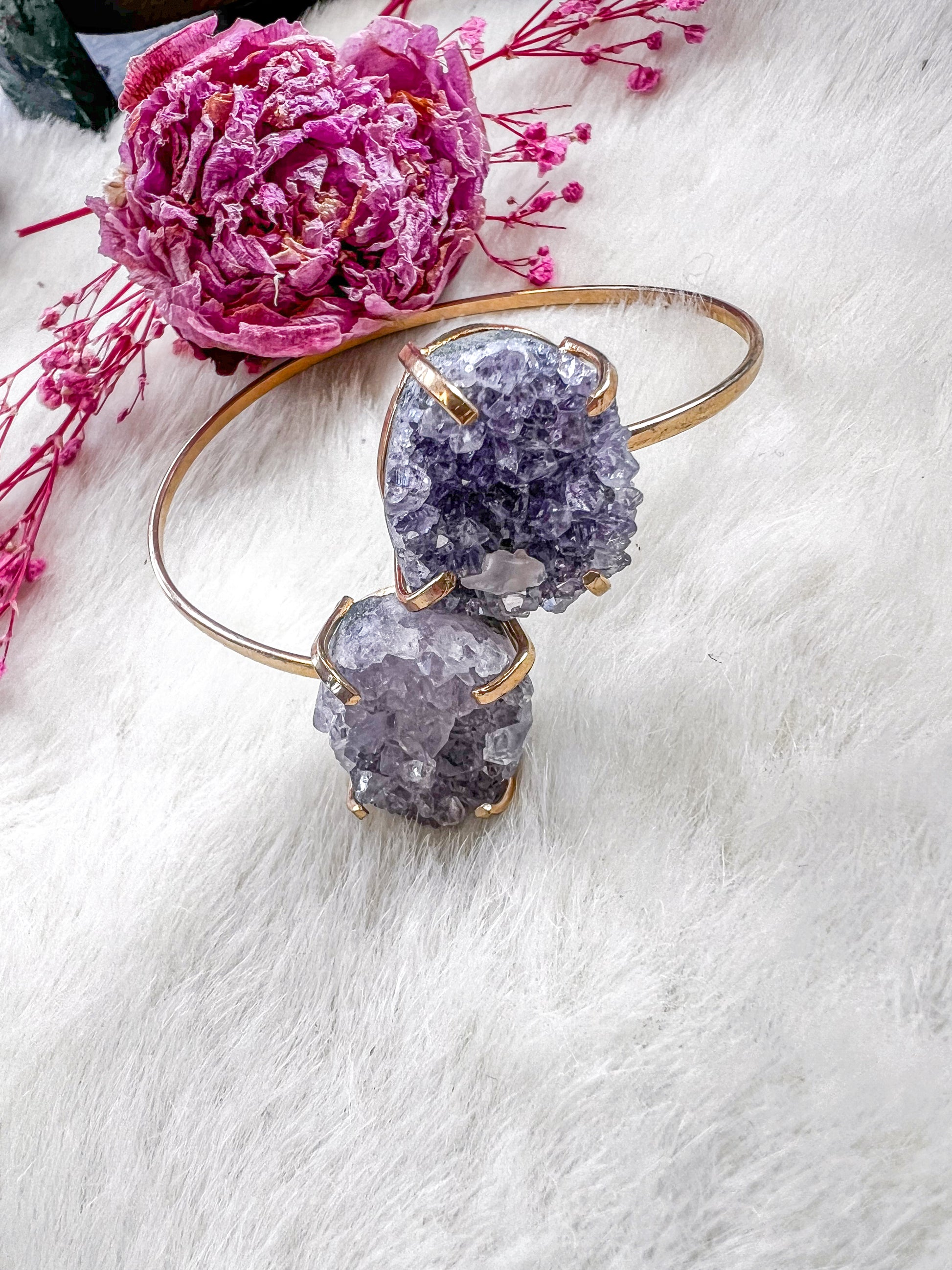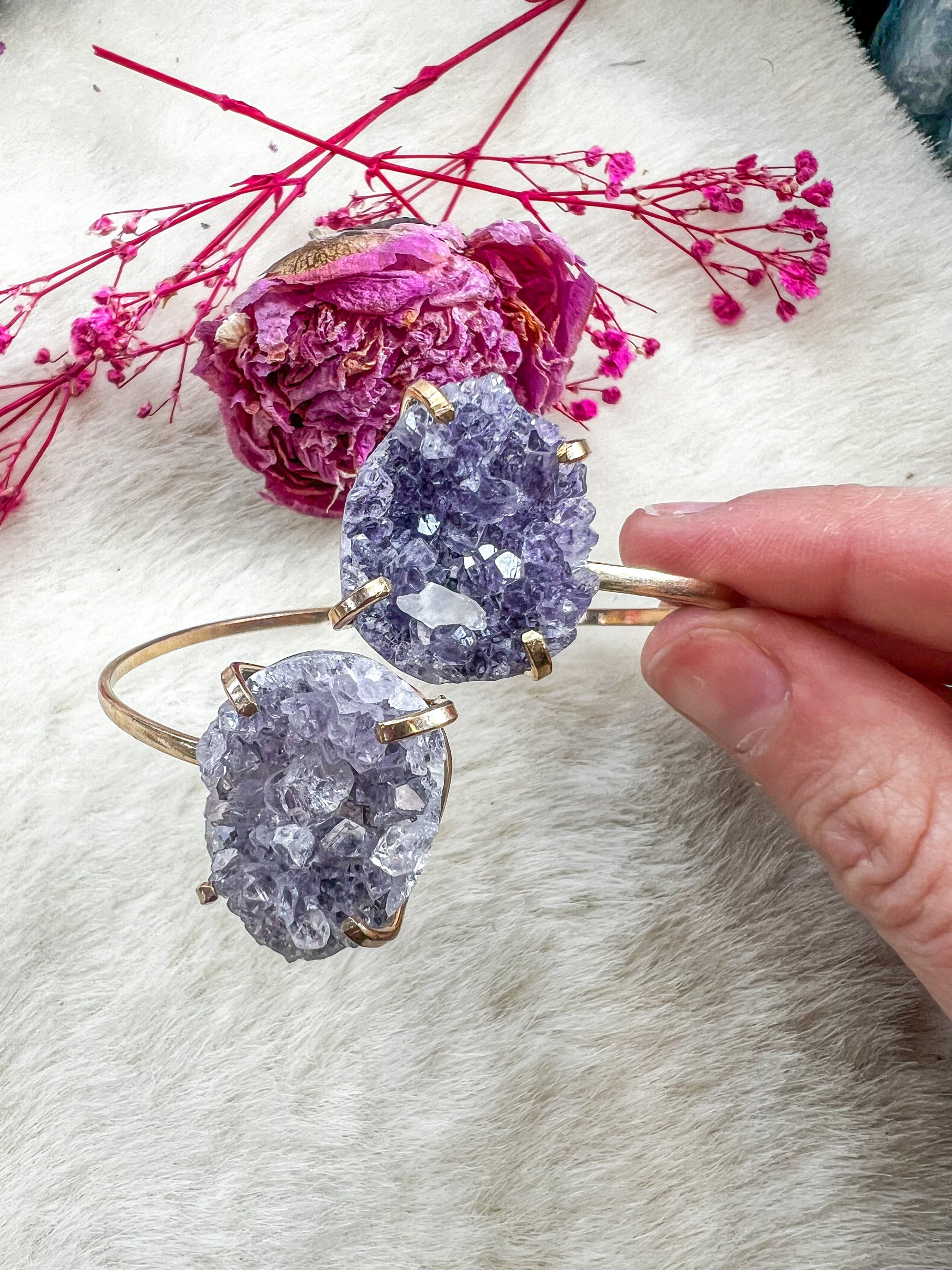 Druzy Amethyst Gold Plated Adjustable Bracelet