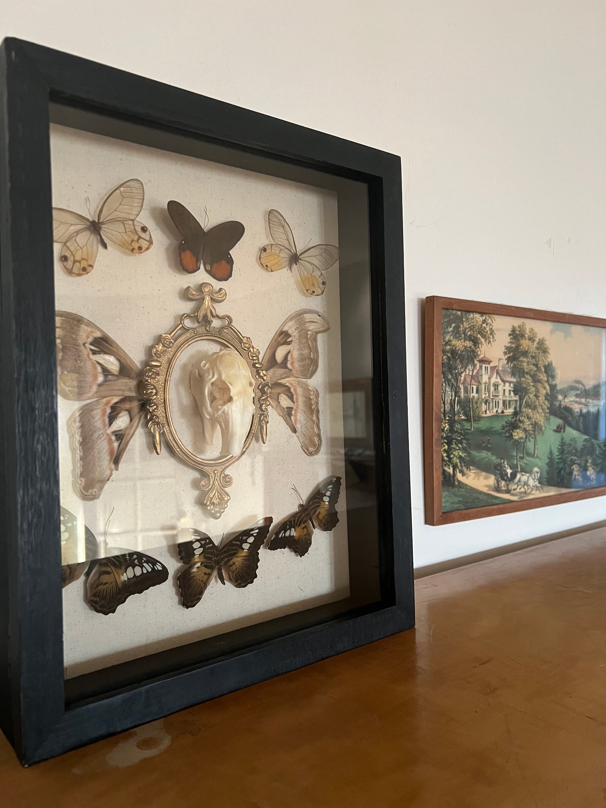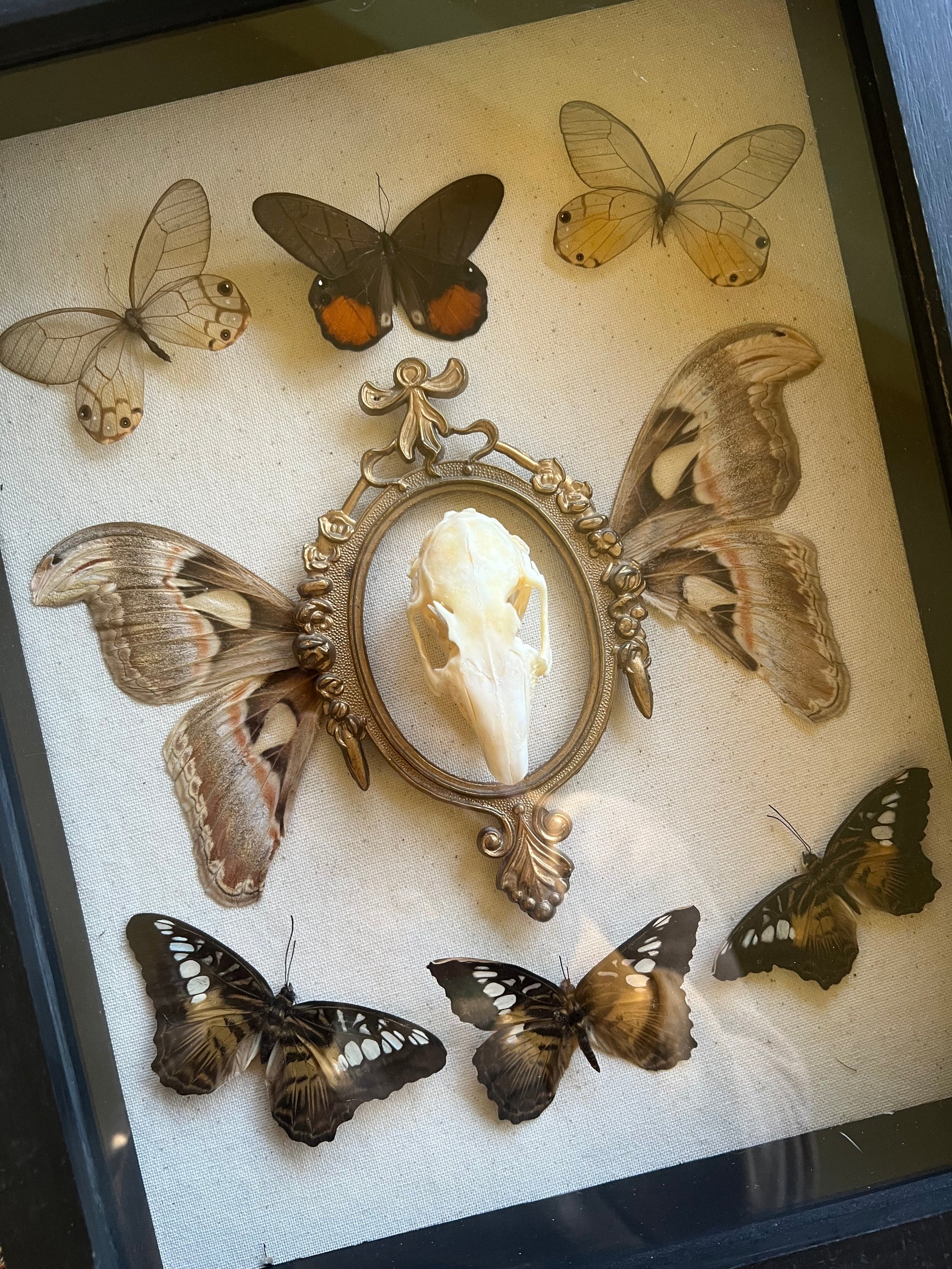 The Ancestral Court Butterfly Moth Rabbit Skull Oddities Taxidermy Shadowbox Framed Artwork